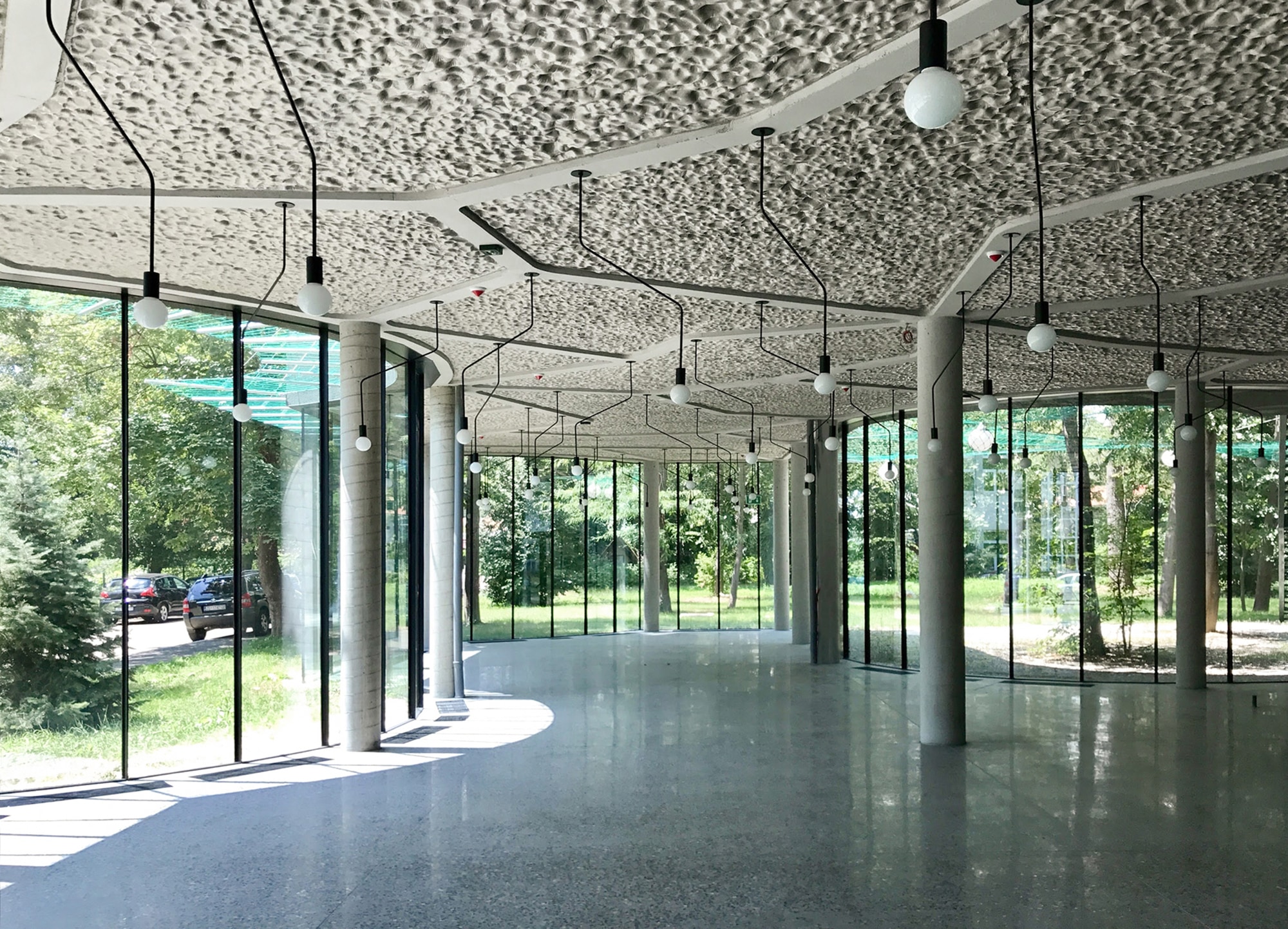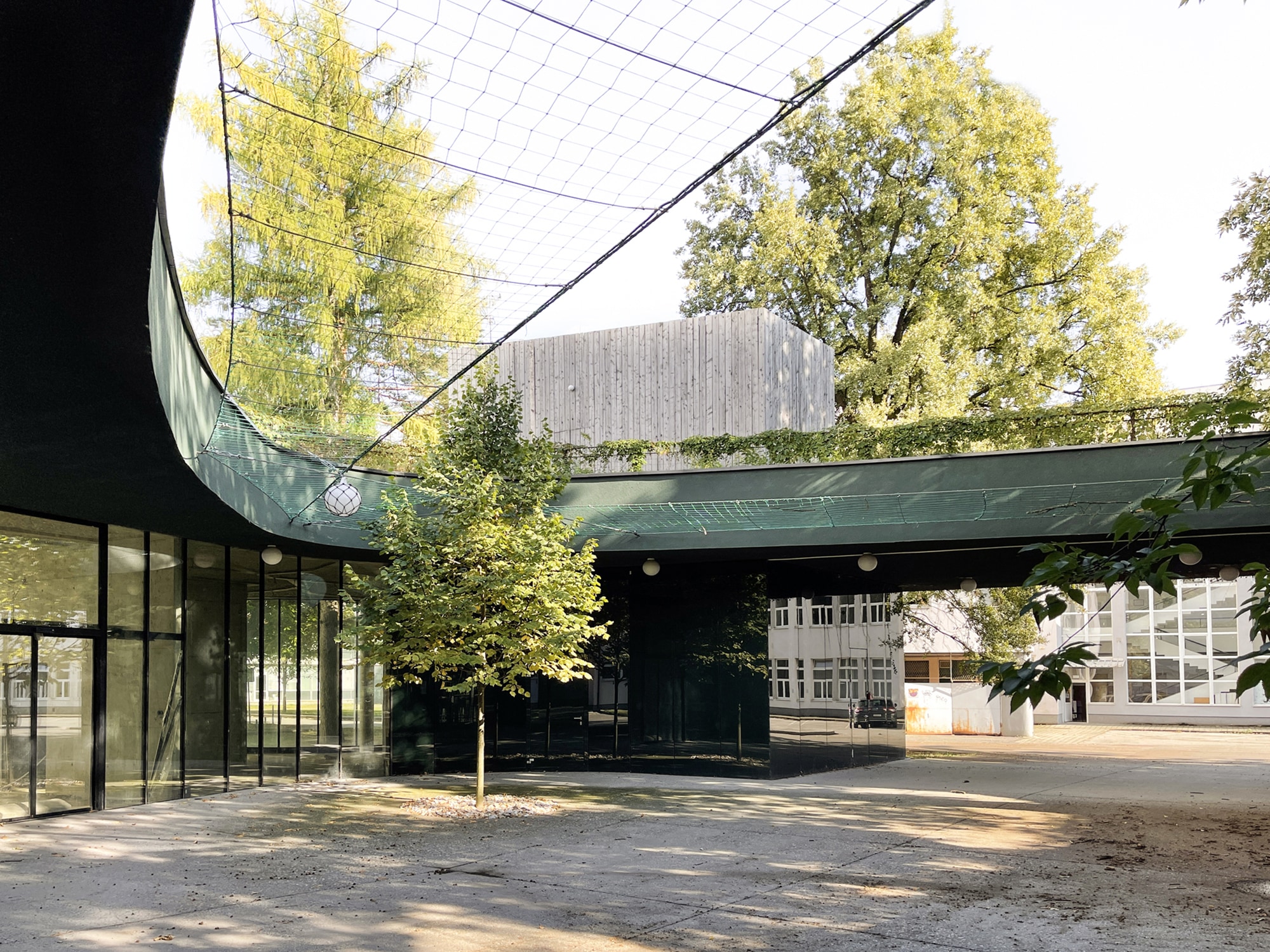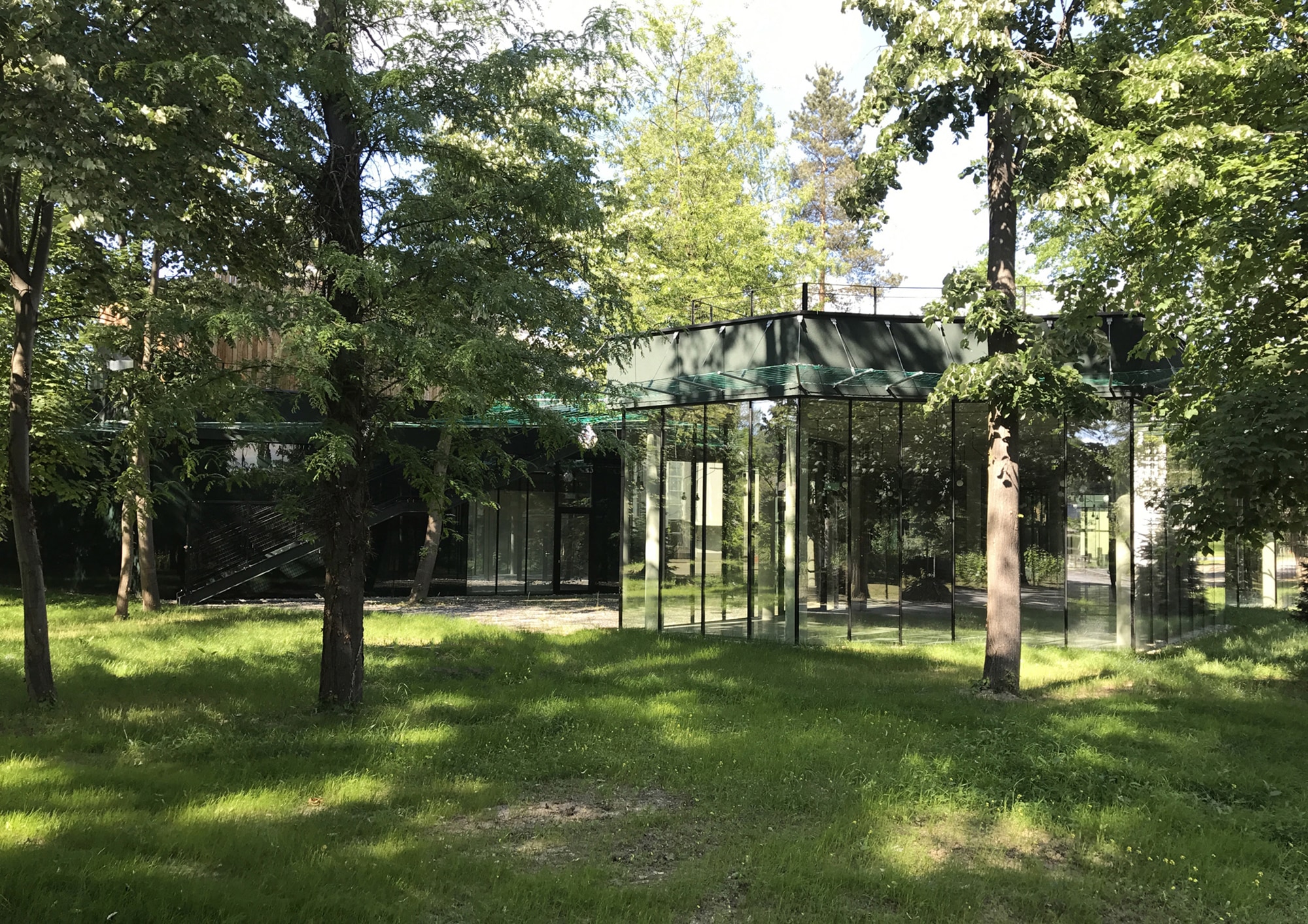 Ideja novog Paviljona / Restorana bila je da konstruira prostor uvažavajući kvalitetno visoko drveće na parceli, čijim se mapiranjem potpuno definira preostali mogući teritorij za izgradnju. Podizanjem “;izrezanog” zelenog teritorija u zrak, dobiva se prostor “ispod”. Duž cijelog ruba krova formirana je tzv. vegetativna streha, osnovni oblikovni i funkcionalni element. Ideja je bila napraviti održivu kuću, koja će i materijalima i izgradnjom doprinositi okolini. U projektiranju se poseban značaj dao prirodnom osvjetljenju koje doprinosi smanjenju energetskih potreba za umjetnom rasvjetom, grijanjem i hlađenjem prostora. Krov i njegova vegetativna prepuštena streha odlični su regulatori topline i debeli pokrivač koji štiti, čuva kuću od hladnoće zimi i vrućine ljeti. U kuhinji su svi radni i uslužni prostori organizirani na jednom nivou – u prizemlju, da se omogući idealna funkcionalnost i pristup svim jedinicama. Mali privremeni objekti i staklenici oduvijek prisutni po cijelom Kampusu kao dio kulture fakulteta, poslužili su kao inspiracija za smještajni dio s deset apartmana koji još nije izveden. Apartmani su zamišljeni kao slobodno postavljeni lagani volumeni ostakljeni s jedne strane, a privatnost se postiže podizanjem tih elemenata na krov.