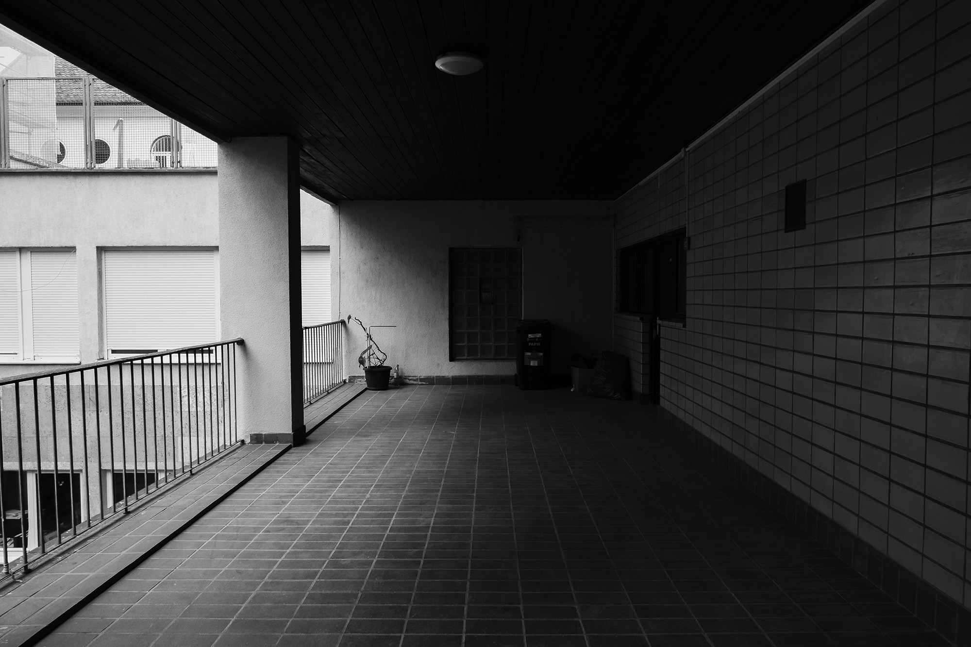 Zgradom katoličkog doma dovršena je arhitektonska cjelina Župe svetog Blaža, fokus zapadnog proširenja Donjeg grada. Suvremenim rječnikom, riječ je o hibridnoj građevini, kako u smislu urbane formacije jer kao uglovnica zatvara otvoreni blok, tako i u smislu njenog raznolikog sadržaja koji se mijenjao kroz osamdeset godina intenzivne upotrebe. U nastavku zatečene logike složene cjeline različitih volumena crkve, zvonika i župnog dvora arhitekta Viktora Kovačića (1914.), podijeljena je u dva dijela. Manji, dvorazinski volumen naslanja se na crkvu i zatvara dvorište župnog dvora. Veći, petrazinski volumen prema sjeveru dovršava niz ugrađenih zgrada u Kordunskoj ulici, a prema istoku se spušta u suteren i formira slikovit mali trg iza crkve s kojega se pristupa u predvorje kino dvorane, nekad pučko učilište, a danas kafić. Manji volumen ravnog krova sasvim je jednostavan i završen istim materijalima kao i Kovačićeva crkva, pločama travertina i bijelom žbukom. Veći volumen pokriven je masivnim četverovodnim krovom i artikuliran loggijama u prizemlju i trećem katu, s tektoničkom podjelom žbukanog pročelja na kojemu je vidljiva razlika konstruktivnog armiranobetonskog skeleta i ispune. Osim kino dvorane i nekoliko ureda u nižim razinama, zgrada sadrži najamne stanove. U jednom dvorazinskom stanu bio je i ured Marijana Haberlea.